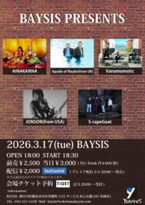 出演:AINAKANNA / Upside of Maybe(from UK) / Vanamotic / JONSON(from USA) / S-capeGoat